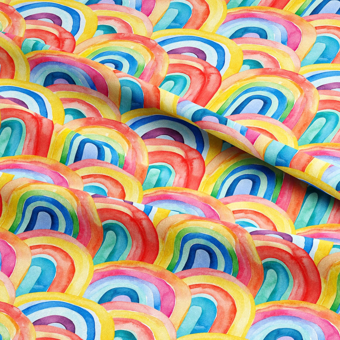 48cm Bolt End - Cotton Jersey - Watercolour Rainbows
