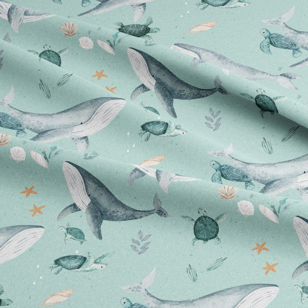 Cotton Jersey - Sea Life in Seafoam