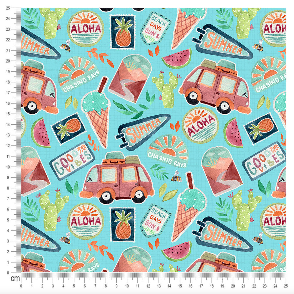 DISCONTINUED!!! - Cotton Jersey - Summer Patches in Maya