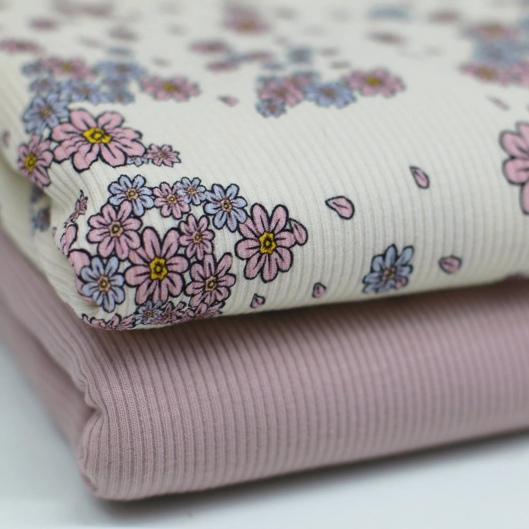 Fine Ribbed Jersey - Pink and Lilac Ditsy Flowers