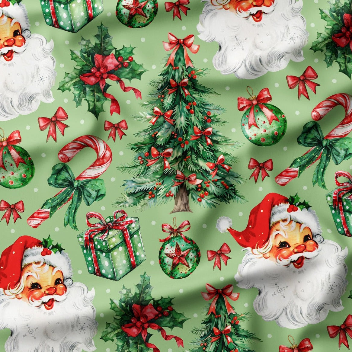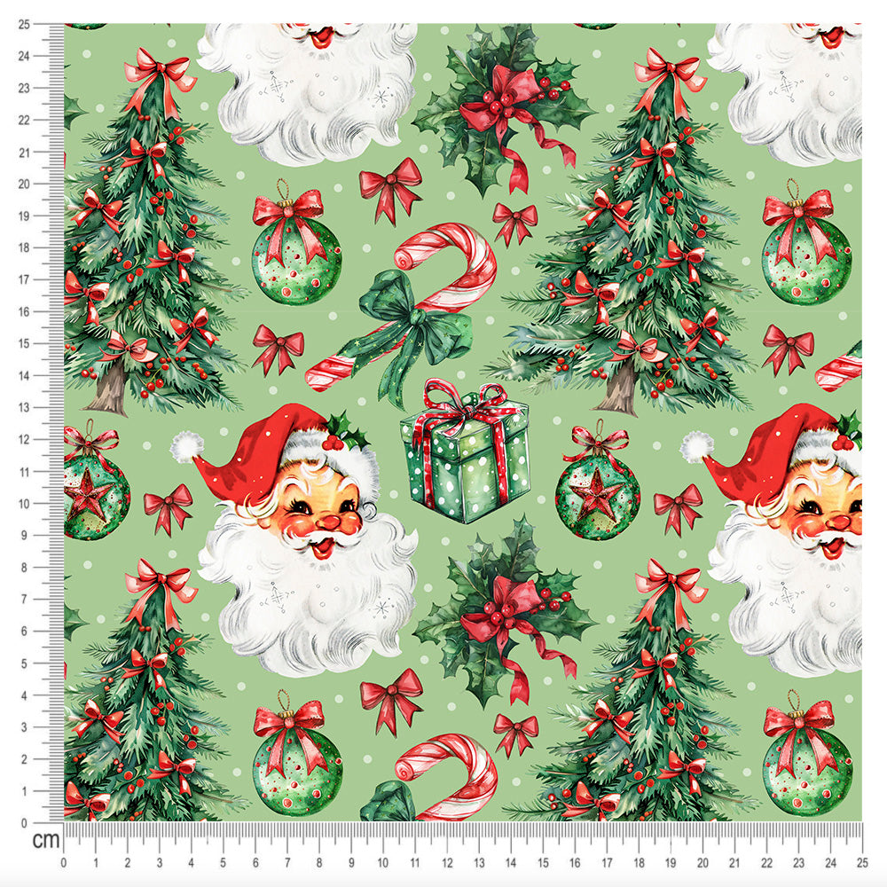 Cotton Jersey - Retro Santa in Light Green