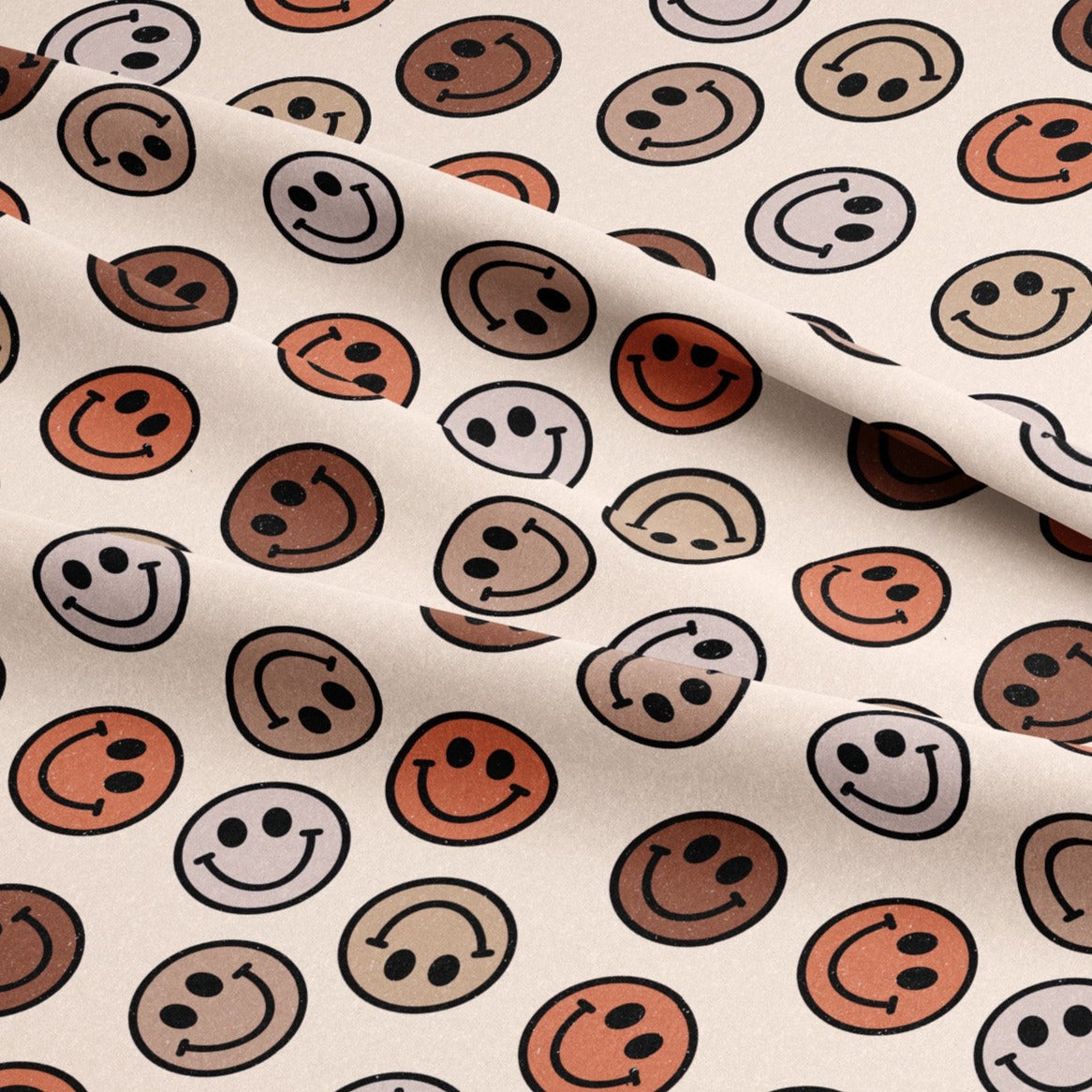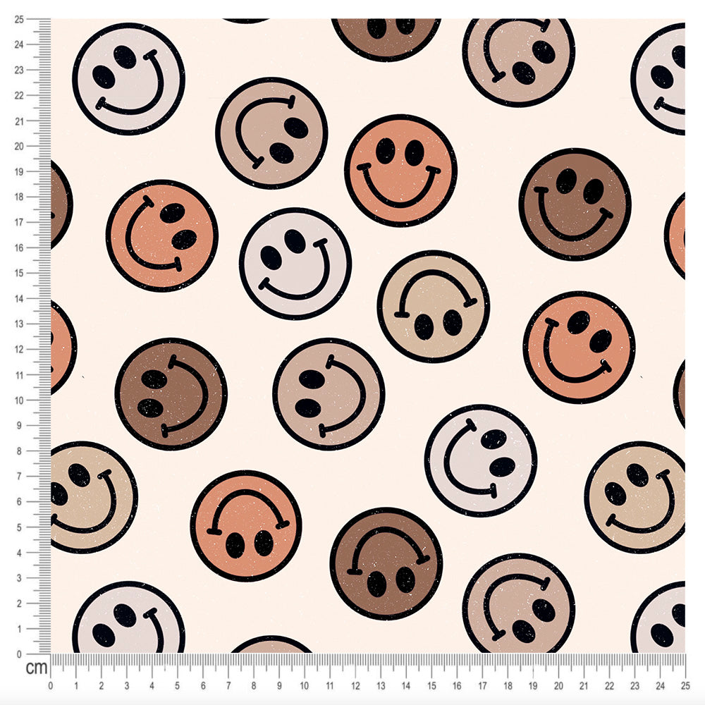 Cotton Jersey - Retro Brown Smileys
