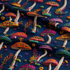Cotton Jersey - Embroidery Look Mushrooms in Navy