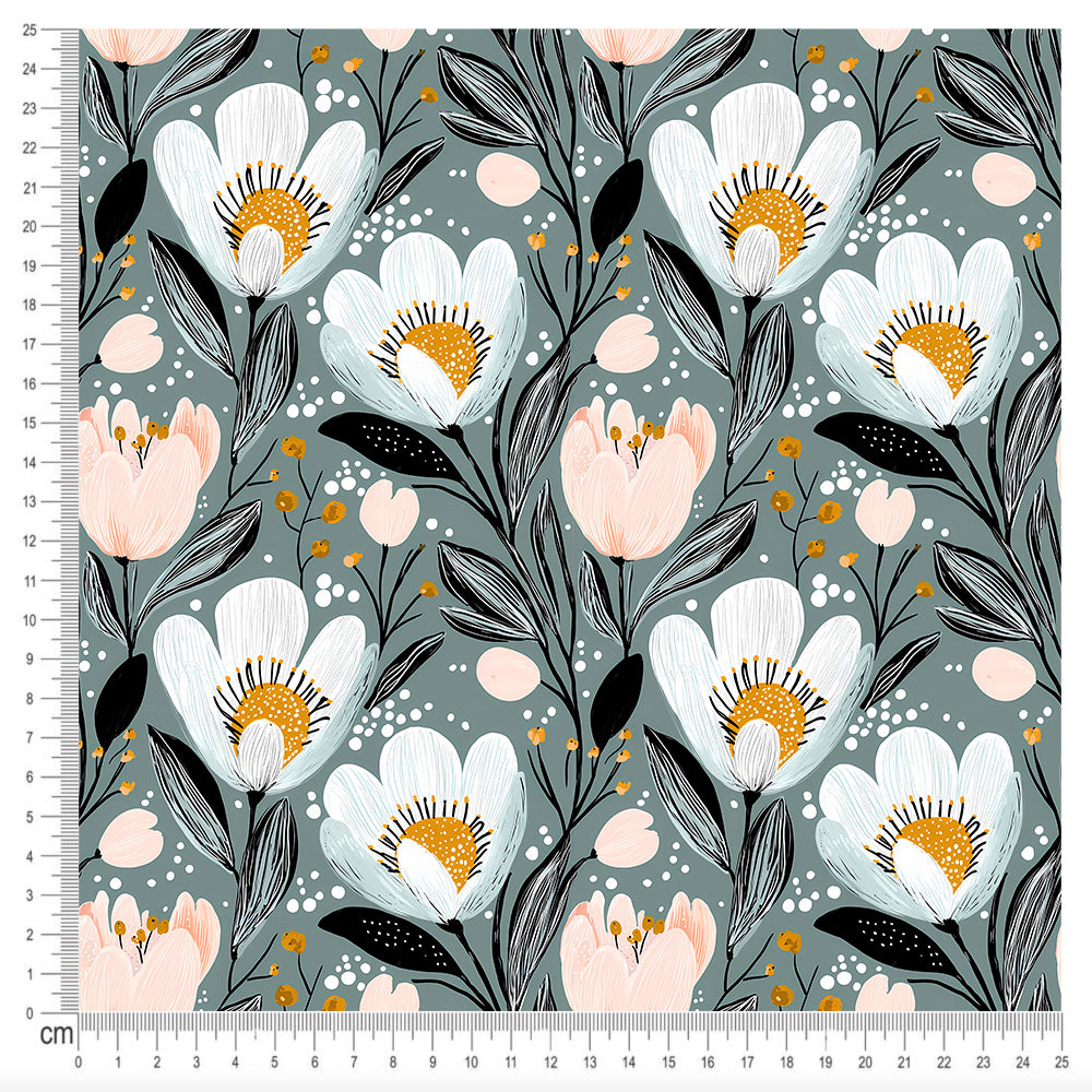 Print On Demand (IN-HOUSE) - Flowers In Blue-Grey